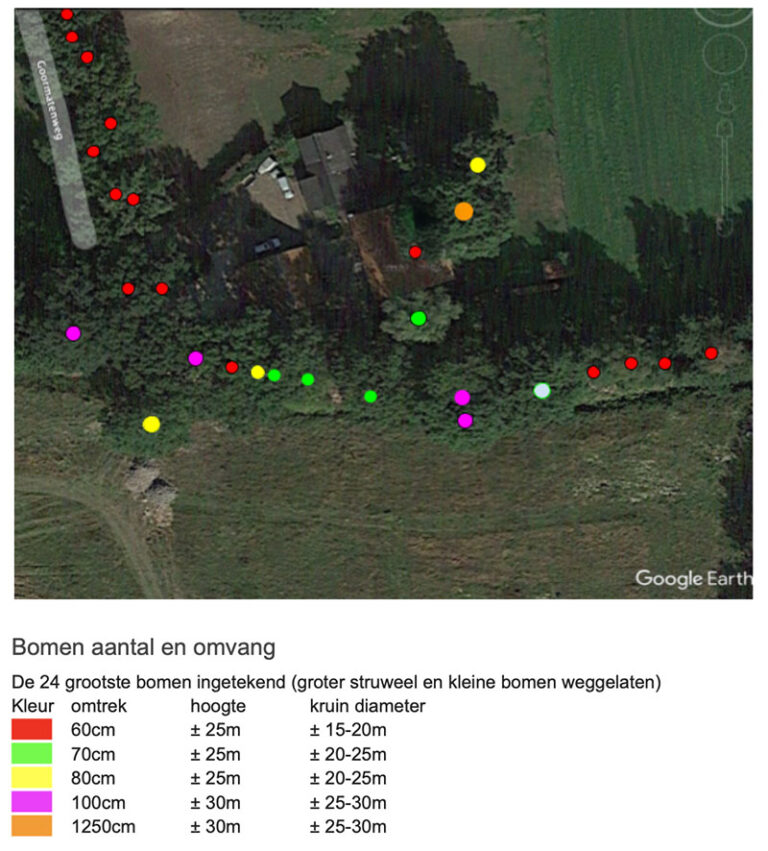 Het perceel betreft een locatie buiten de bebouwde kom, met een vrijstaande boerderij omgeven door 27 bomen. De uitdaging in deze casus was om de aanwezige bomen representatief te modelleren en de vergunning gegund te krijgen.